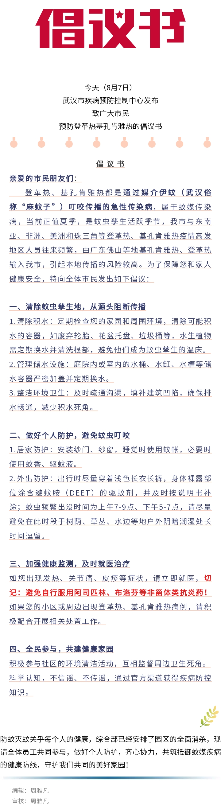 【路德·倡議】預防登革熱基孔肯雅熱,武漢疾控發(fā)布倡議書