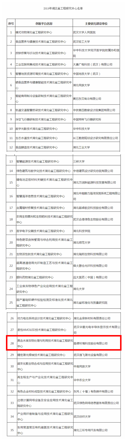 熱烈祝賀路德環(huán)境科技股份公司于2019年9月獲評“高含水廢棄物處理與利用技術(shù)湖北省工程研究中心”,同期入選的還有武漢大學(xué)、華中農(nóng)業(yè)大學(xué)等高等院校及科研院所。
